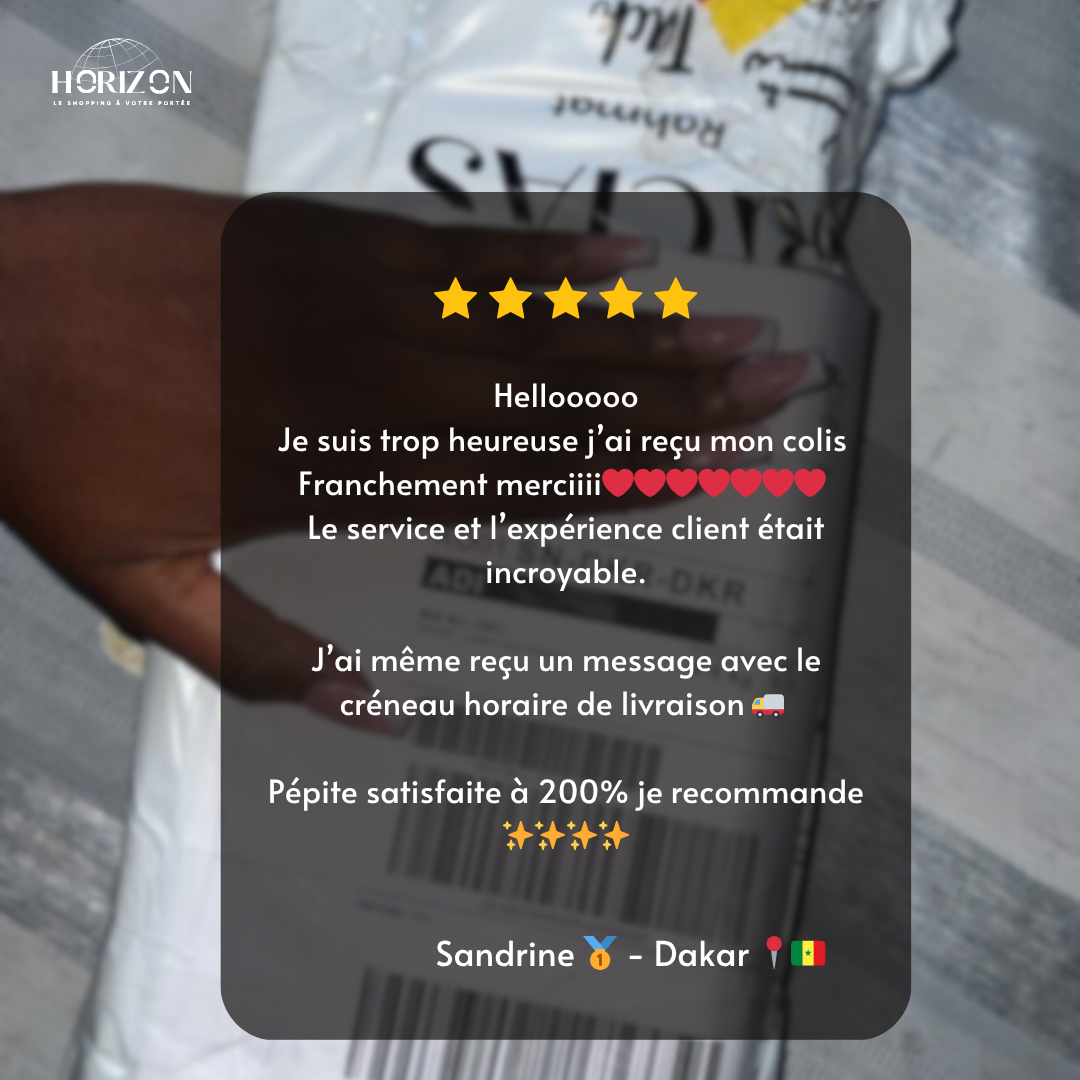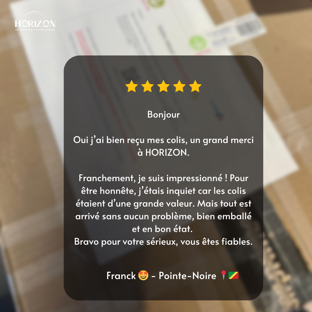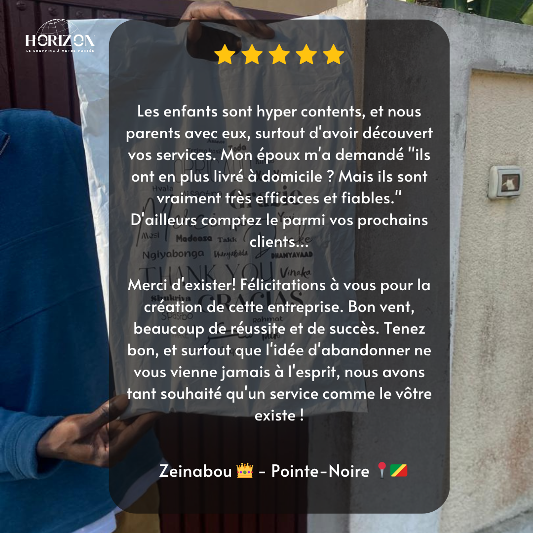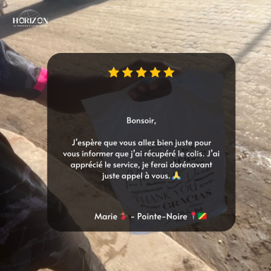 La satisfaction de nos clients est au cœur de tout ce que nous construisons. Chaque commande est traitée avec rigueur et engagement, ce qui nous permet aujourd’hui d’atteindre un taux de livraison de 100 %. Derrière chaque colis livré, il y a une promesse tenue : celle d’un service fiable, transparent et à la hauteur des attentes. Découvrez ce que nos clients pensent de leur expérience avec Horizon Express.